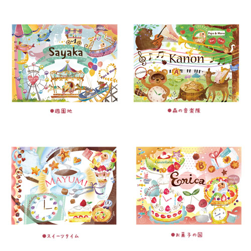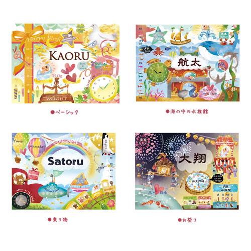 赤ちゃんの出生記録を1枚のイラストにおさめたセミオーダーイラスト